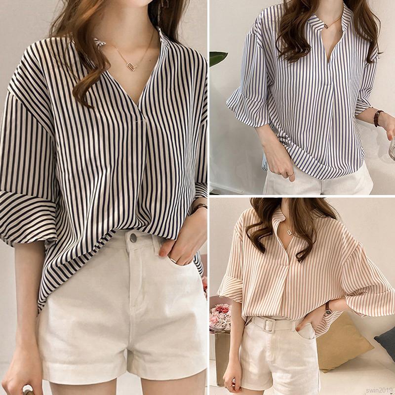 Blouse Wanita Motif Garis / Blouse Baju Atasan Kaos Top Tunik Cewek Wanita Lengan Panjang Motif Garis Elevenia : Contoh model baju kemeja perempuan motif garis modern terbaru.